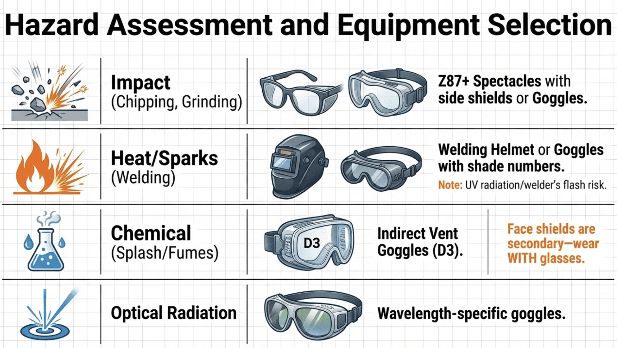 Common protective eyewear types include: